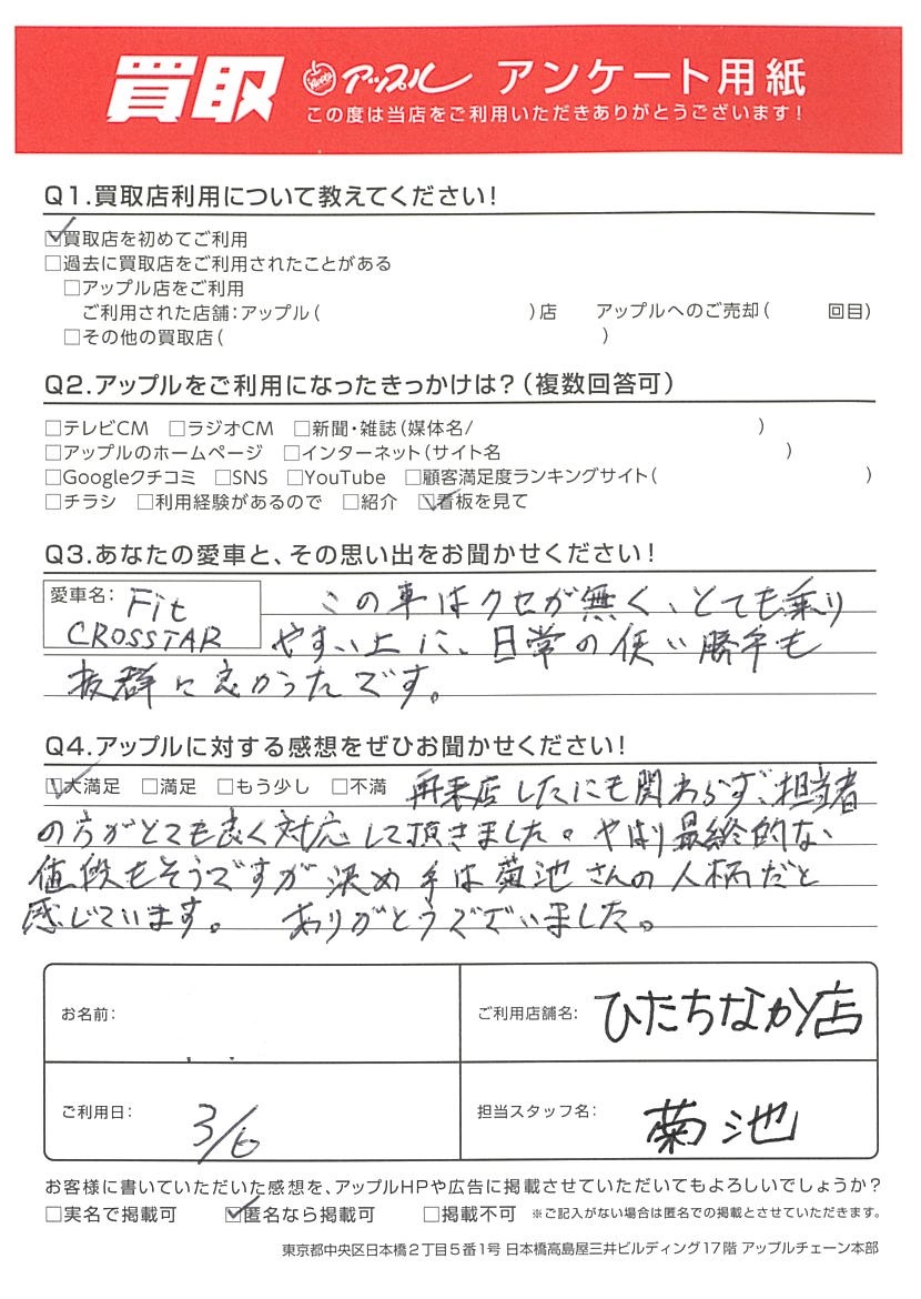 再来店したにも関わらず、担当者の方がとても良く対応して頂きました。