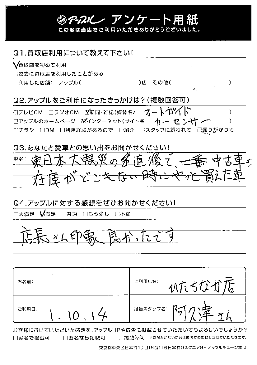 東日本大震災の直後で中古車の在庫がどこもない時にやっと買えた車