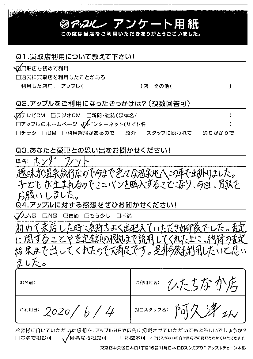 S様 車名:ホンダ フィット(H25年9月以降のハイブリッド含む)