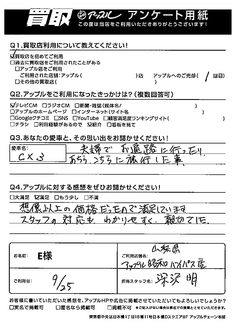 E様 車名:マツダ CX-3