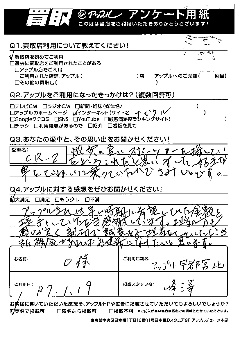 O様 車名:ホンダ CR-Z