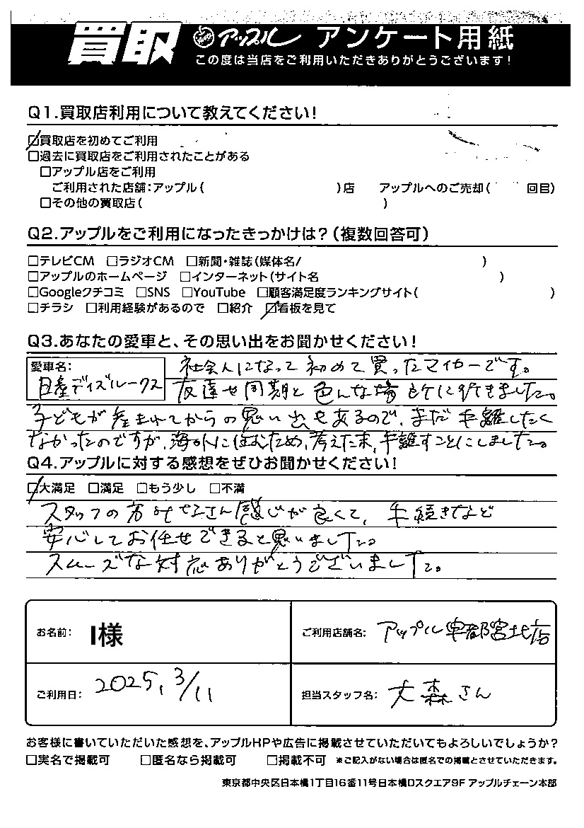 スタッフの方みなさん、感じが良くて、手続きなど安心してお任せできると思いました。