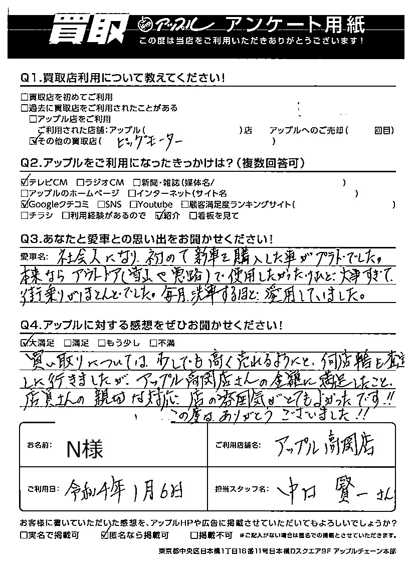 この度はアップル高岡店ご利用いただきましてありがとうございます。