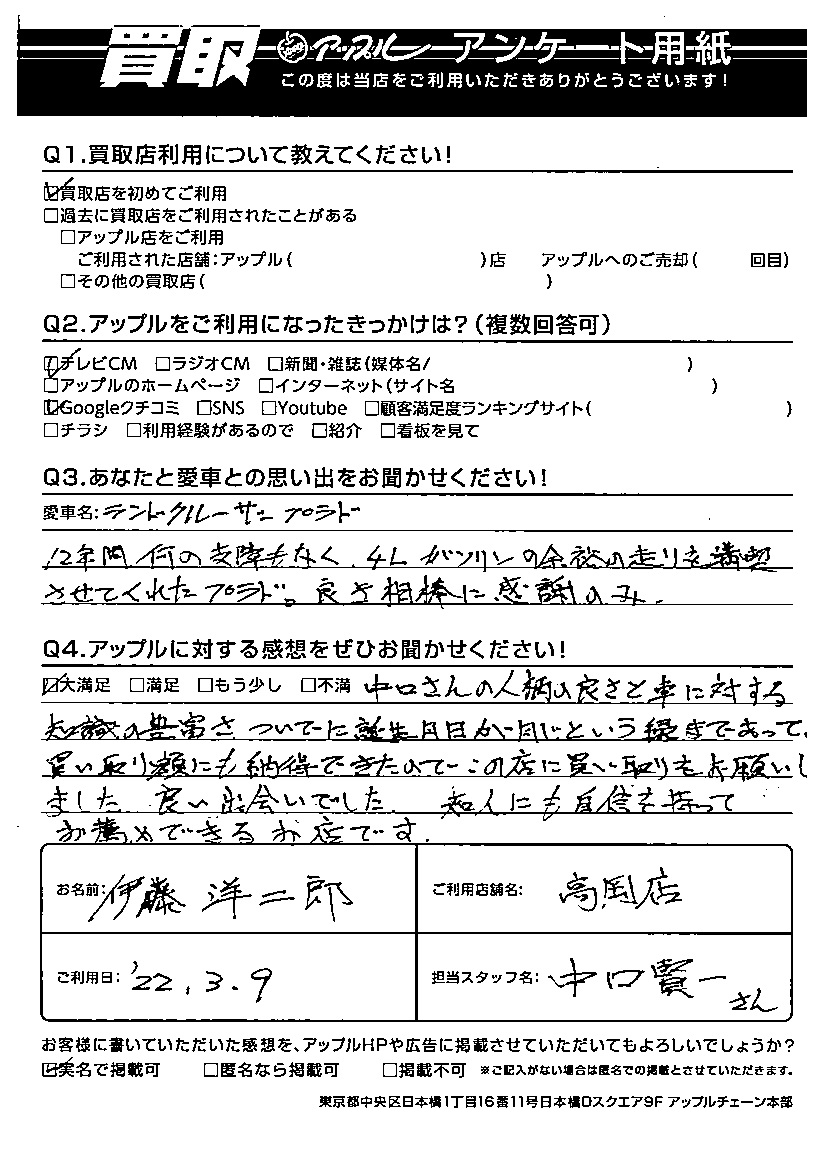 富山県高岡市 伊藤洋二郎様 車名:トヨタ ランドクルーザープラド