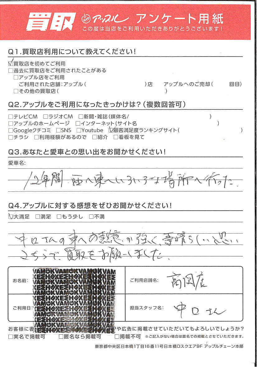 この度はアップル高岡店ご利用いただきましてありがとうございました。