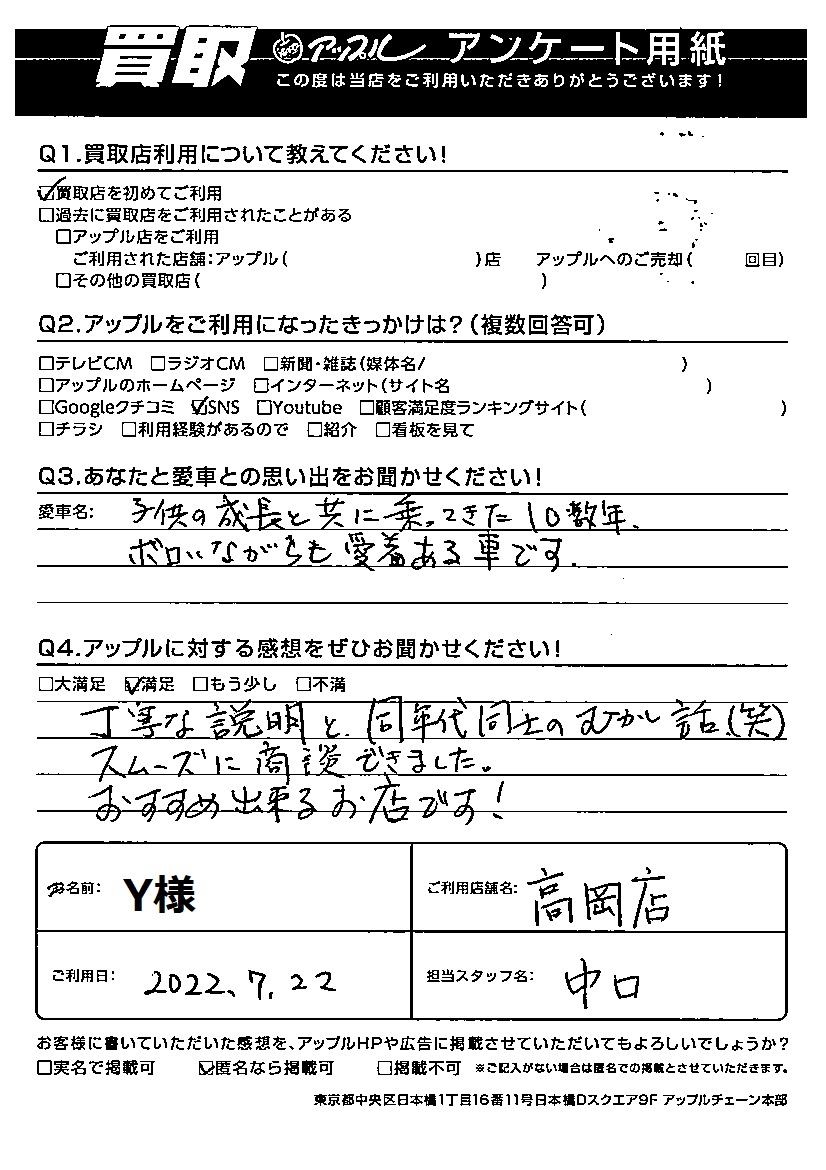 この度はご来店いただきまして、また、ご契約いただきましてありがとうございます。