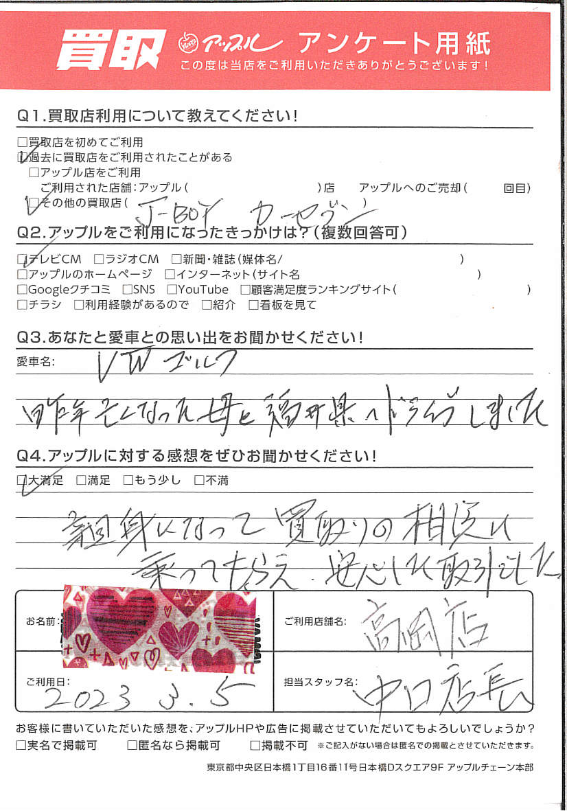 富山県高岡市 M.Y様 車名:フォルクスワーゲン ゴルフ