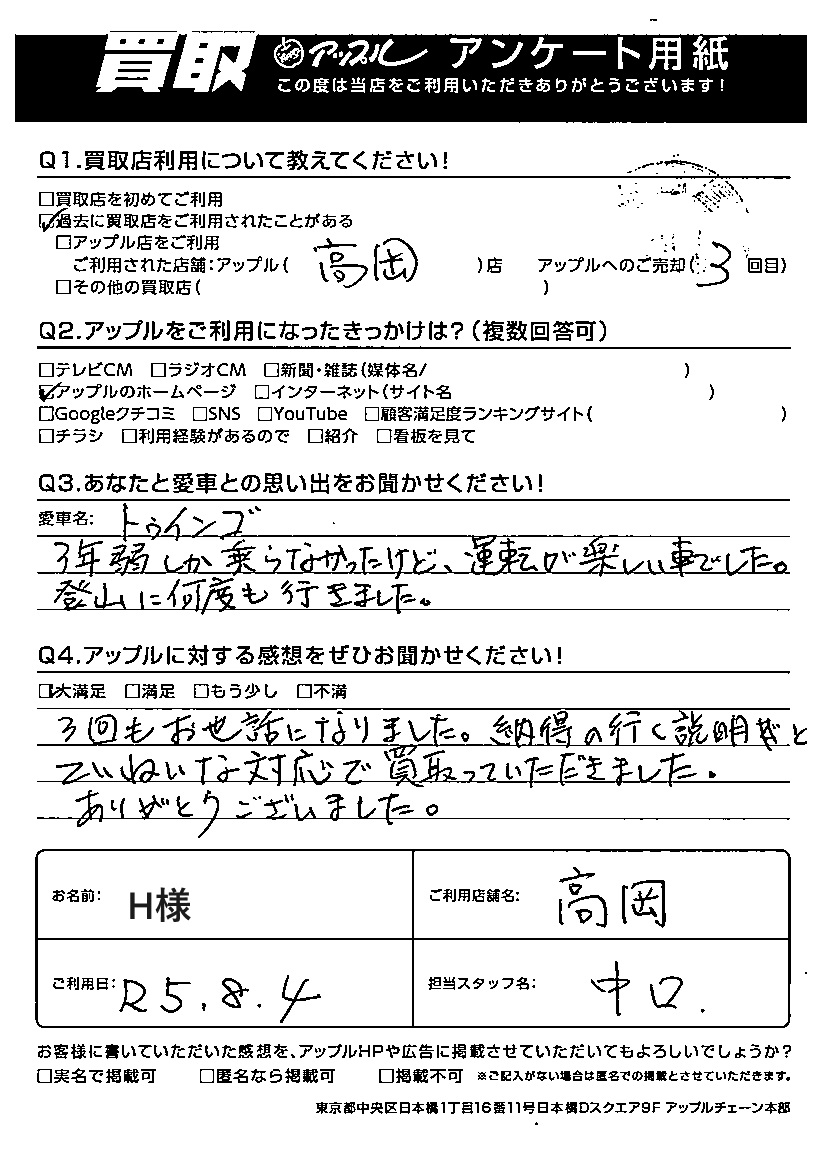 A:アップル高岡店3度目のご利用
