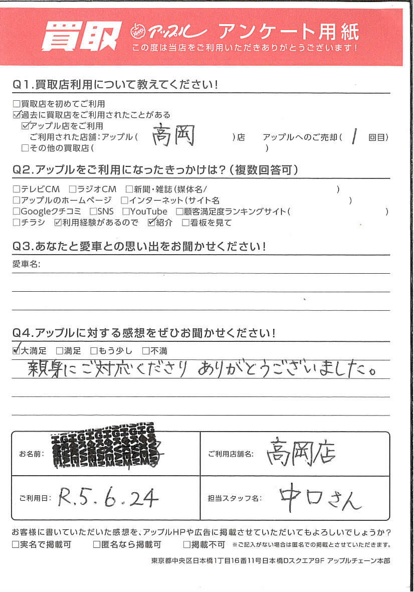 富山県高岡市 Y.M様 車名:スズキ ワゴンR