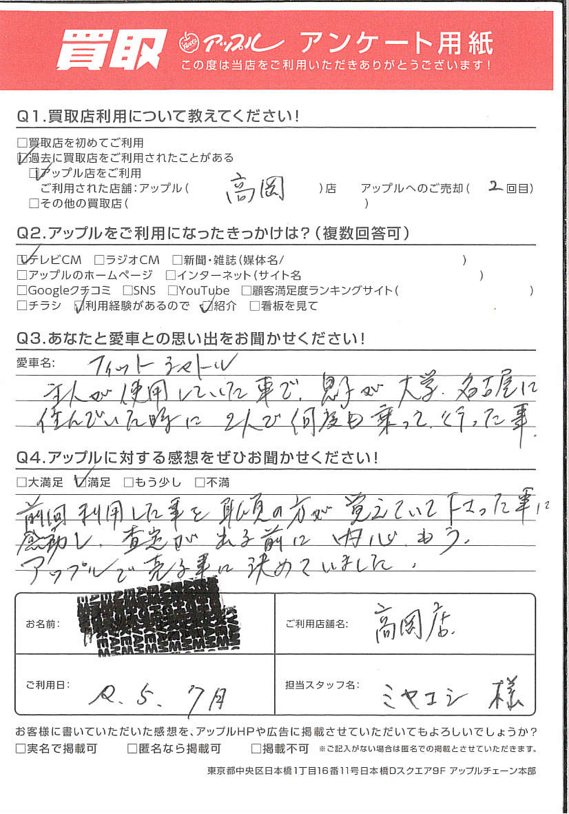 富山県高岡市 K.M様 車名:ホンダ フィットシャトルハイブリッド