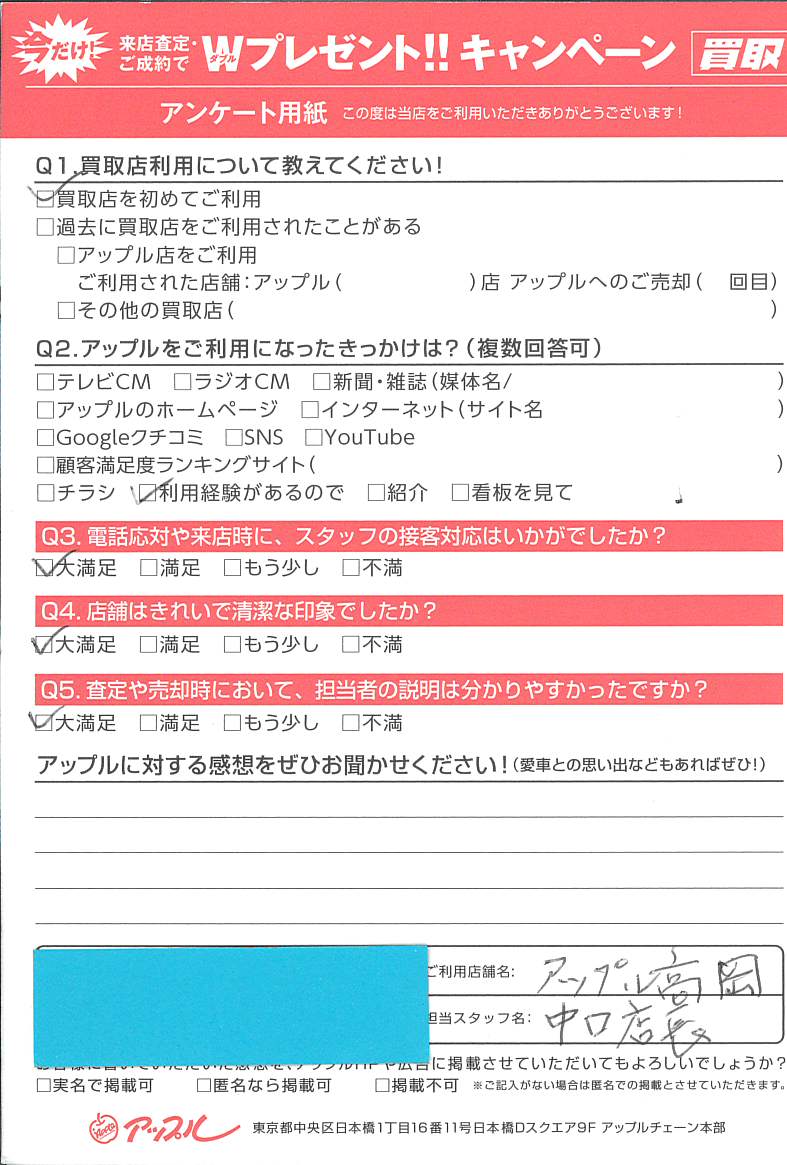 他店も比較の上ご契約となりましたが、戻ってこられるのは薄々感じ取っていました。