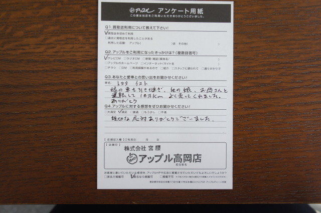 まったく駆け引きも無くスムーズに話が進み、「多分持ってくるから」とのお言葉の翌日、奥様と突然の入庫来店でびっくりしました。