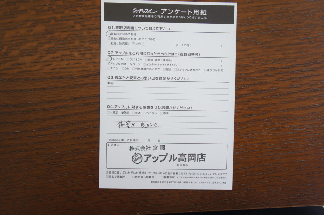この度はアップル高岡店ご利用ありがとうございました。