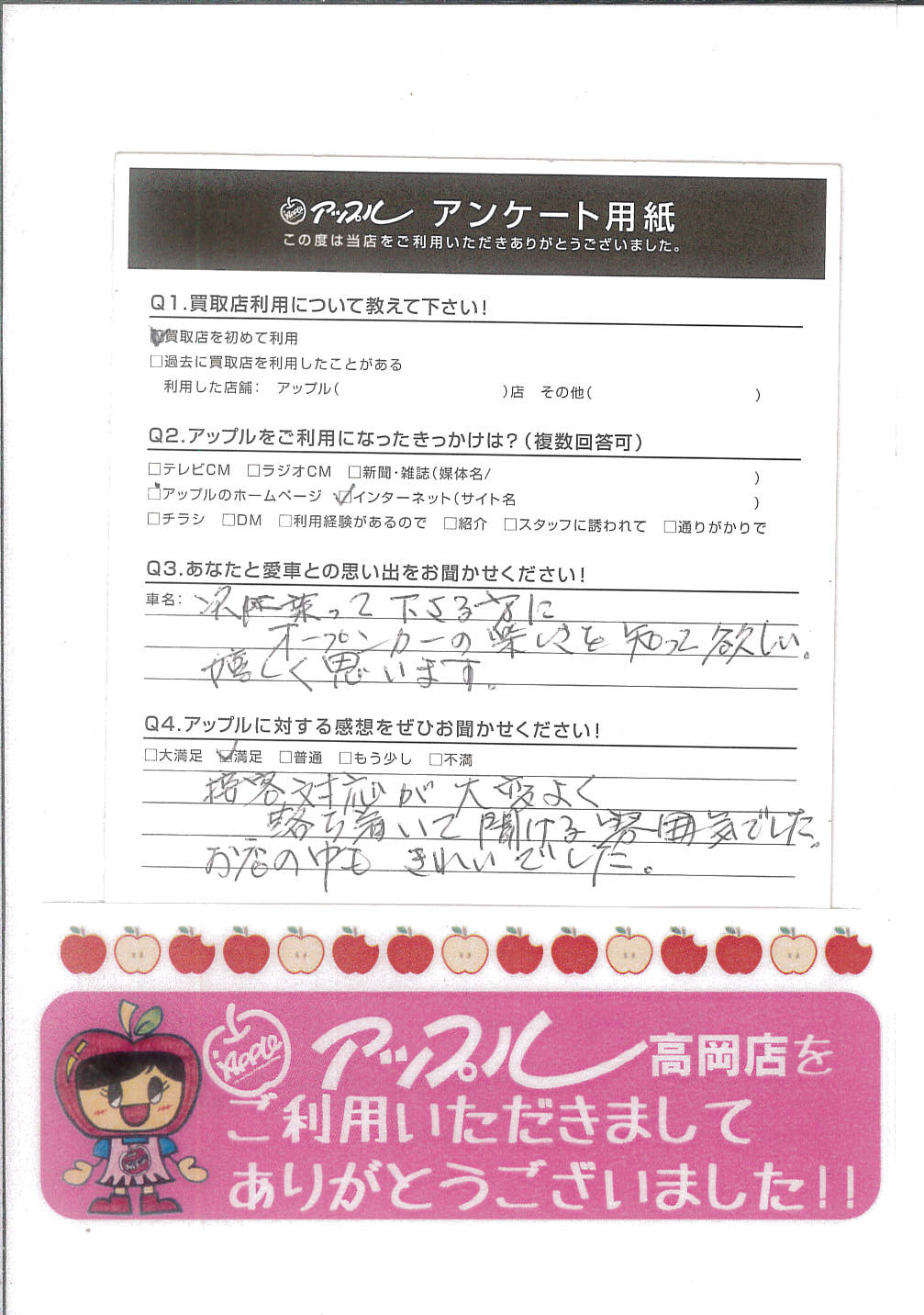 次に乗って下さる方にオープンカーの楽しさを知って欲しい。