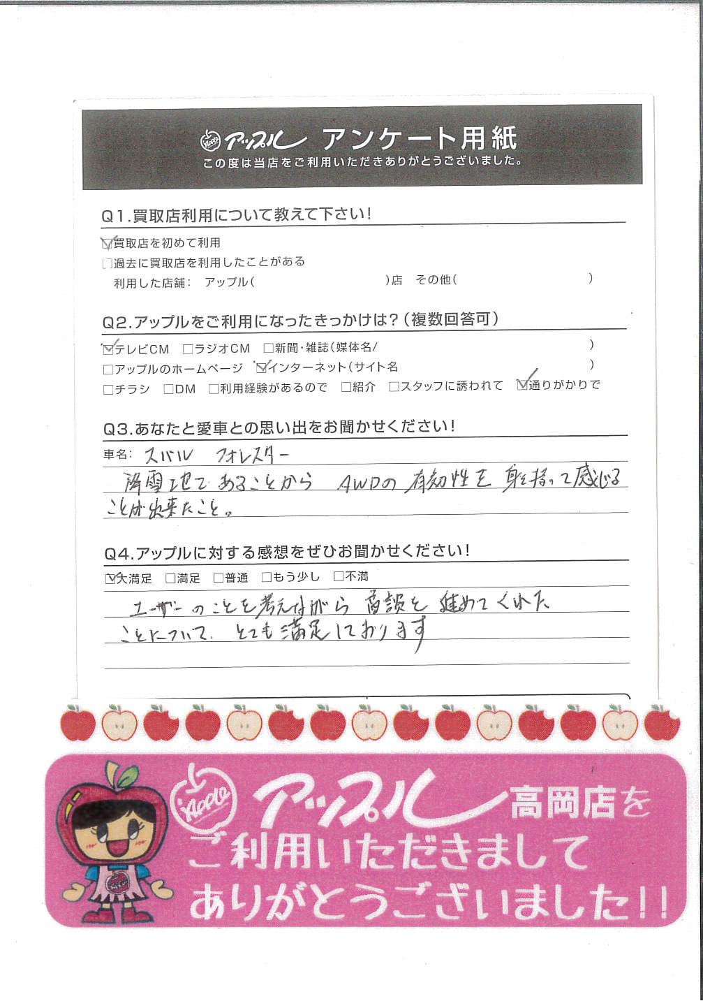 富山県射水市 Y.N様 車名:スバル フォレスター