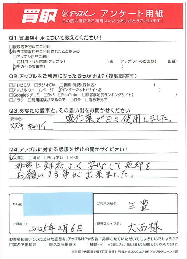 C様 車名:スズキ キャリイ
