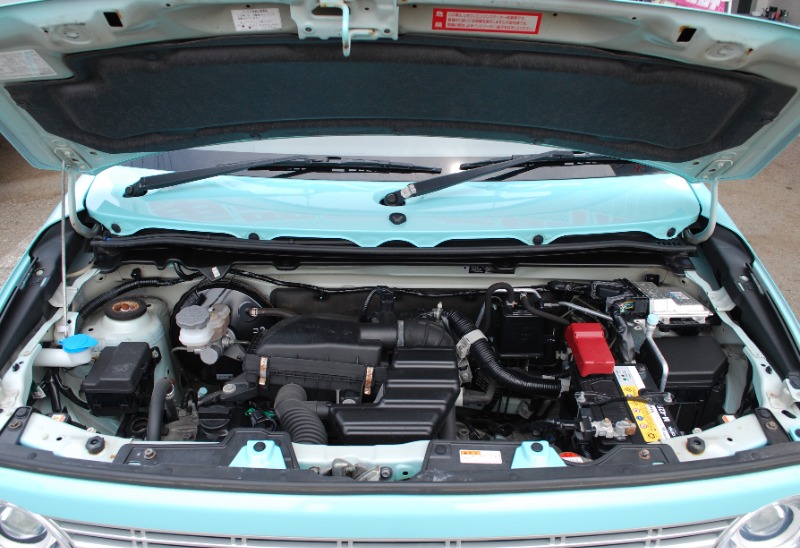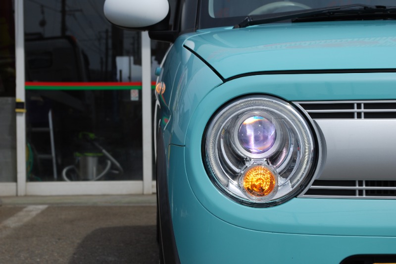 「フレンチミントパールメタリック」と名付けられたブルー系のお色に、爽快なホワイトルーフ&ドアミラーを装備したⅡトーン仕様のお車です。