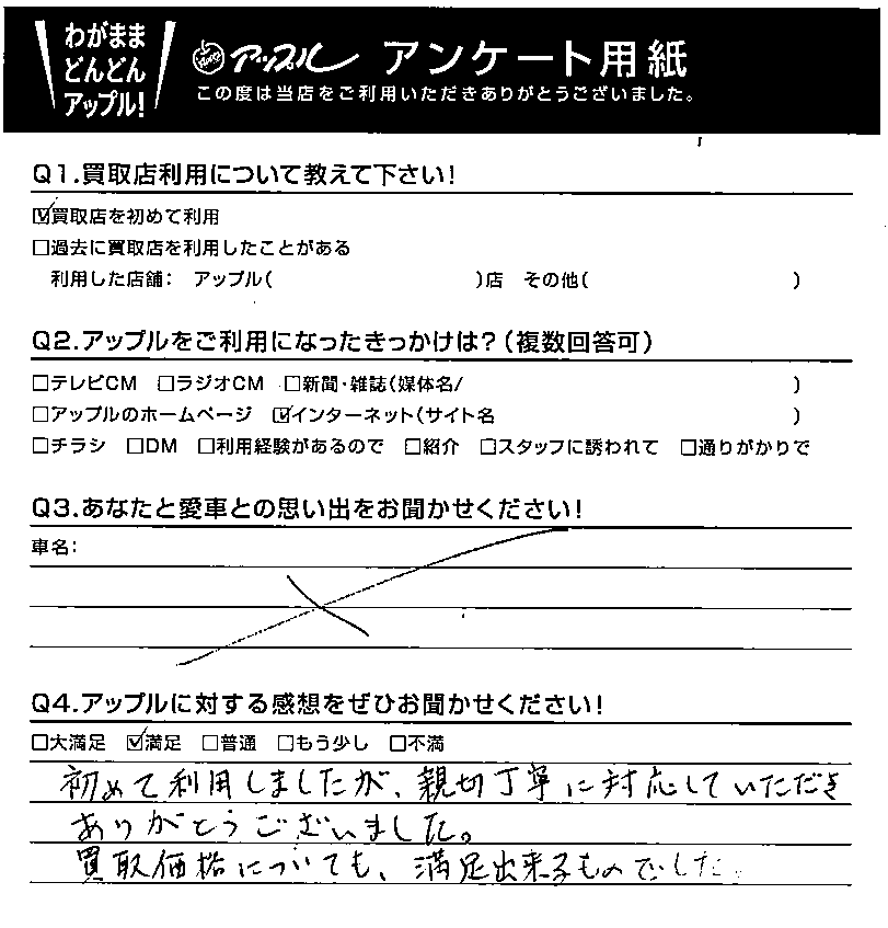 初めて利用しましたが、親切丁寧に対応していただきありがとうございました。