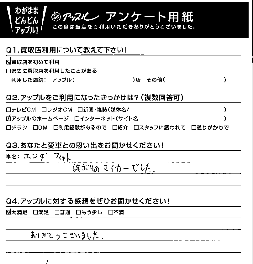 秋田県 匿名様 車名:ホンダ フィット(H25年9月以降のハイブリッド含む)