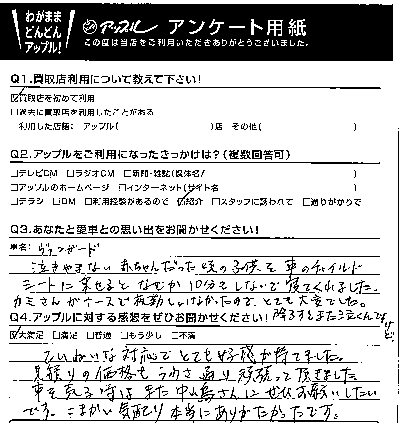 車を売る時はまた中嶋さんにぜひお願いしたいです。