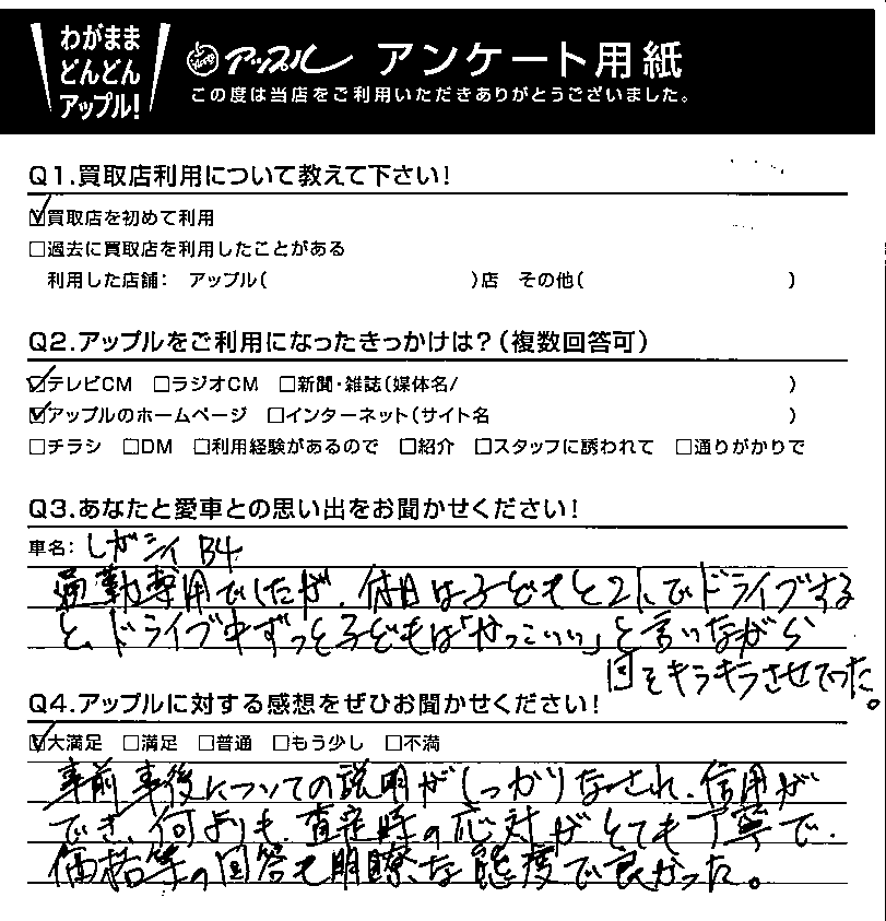 Q.あなたと愛車(レガシィB4)との思い出をお聞かせください!