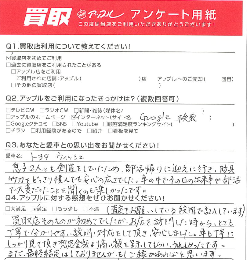 Q.あなたと愛車(ウィッシュ)との思い出をお聞かせください!