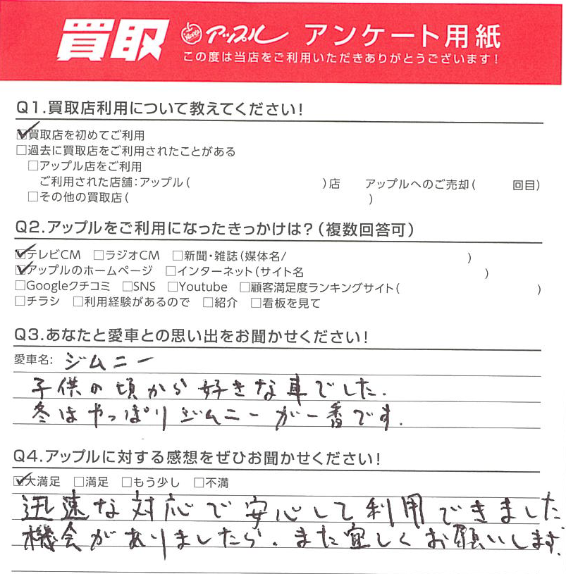 秋田県 匿名様 車名:スズキ ジムニー
