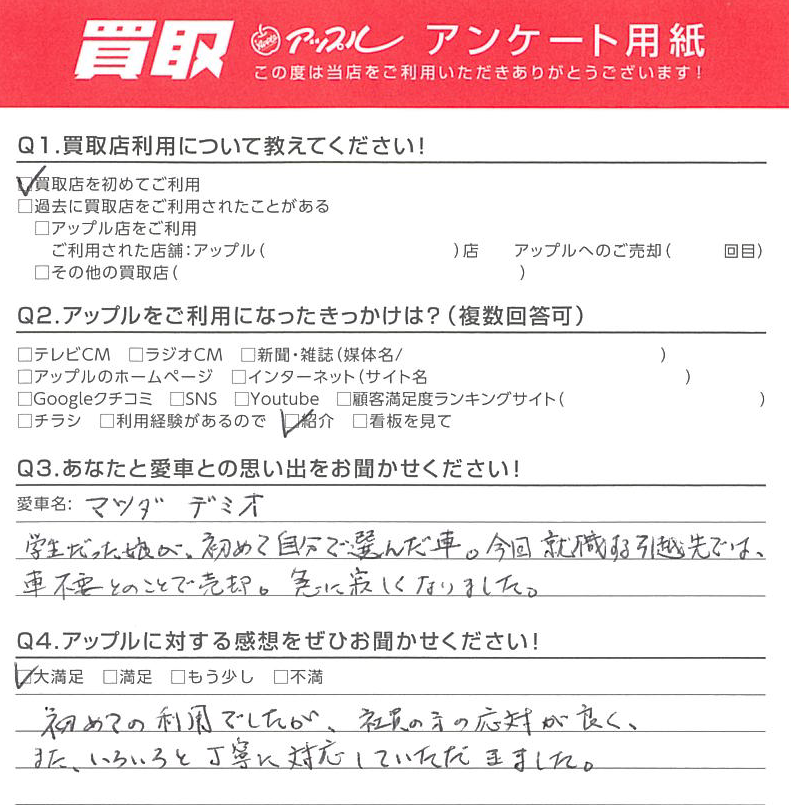 Q.あなたと愛車(デミオ)との思い出をお聞かせください!