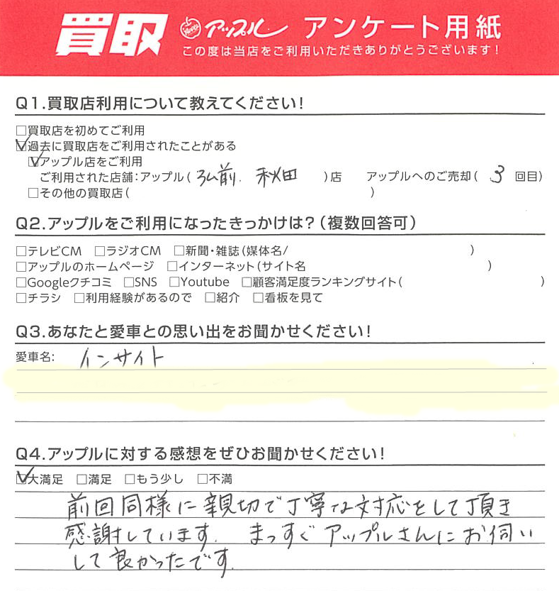 秋田県 匿名様 車名:ホンダ インサイト