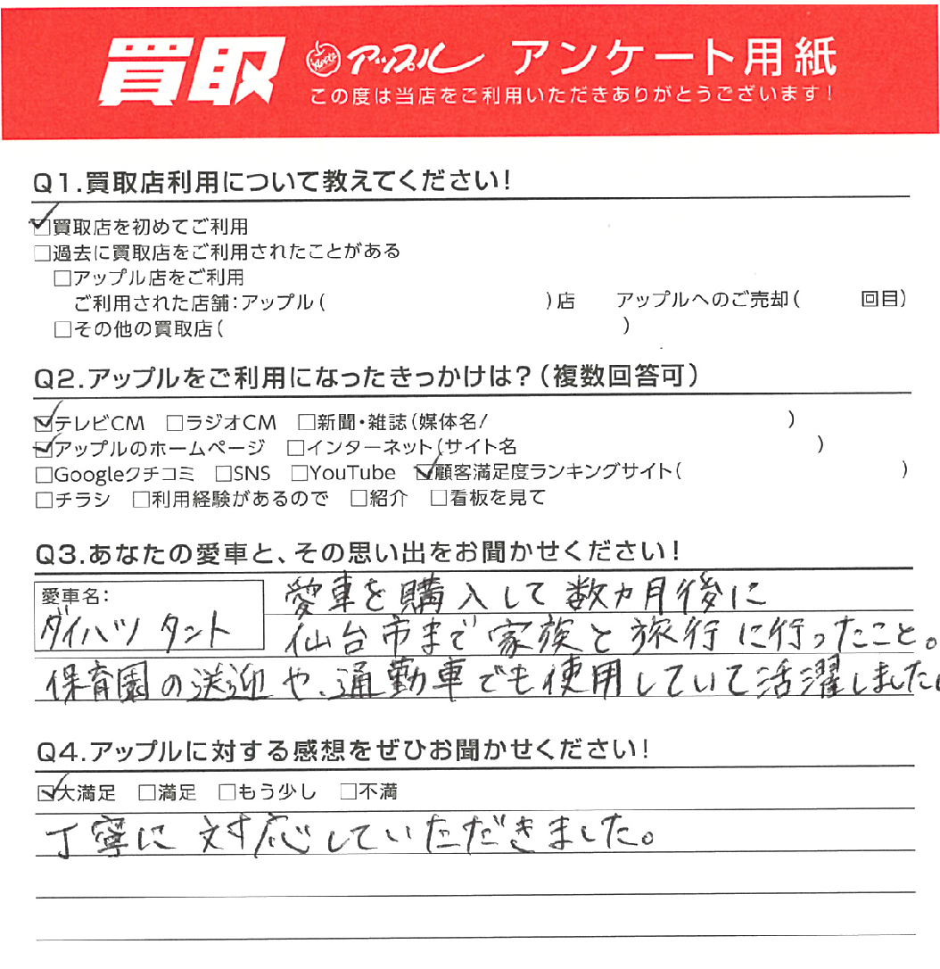 秋田県 匿名様 車名:ダイハツ タント