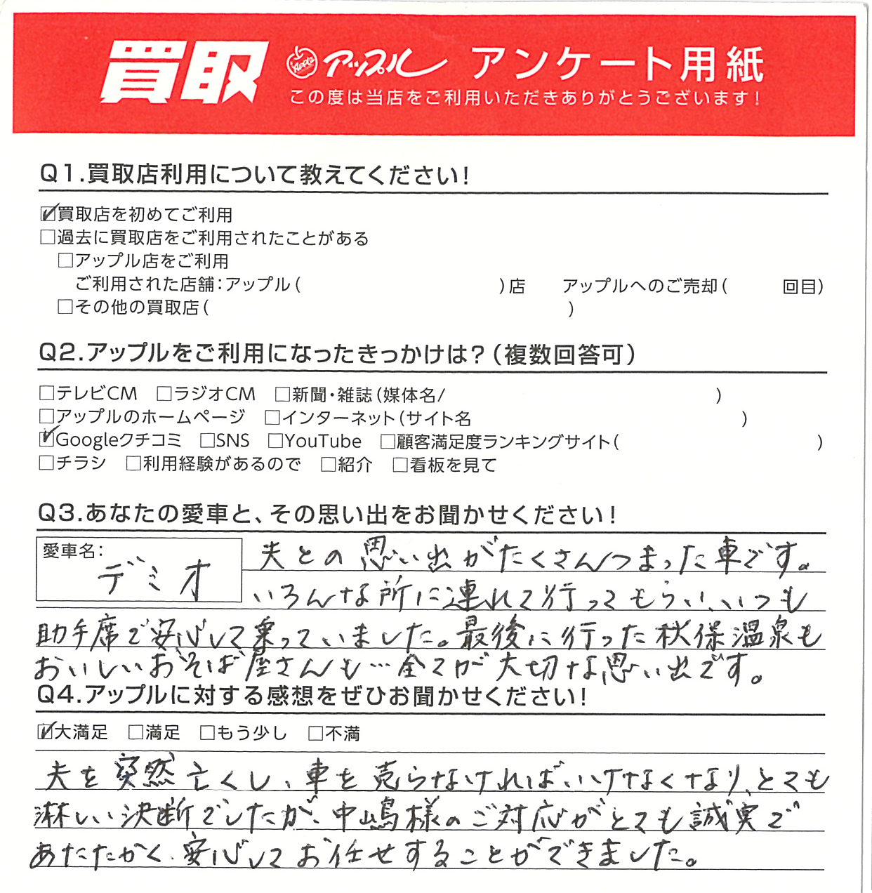A. 夫を突然亡くし、車を売らなければいけなくなり、とても淋しい決断でしたが、