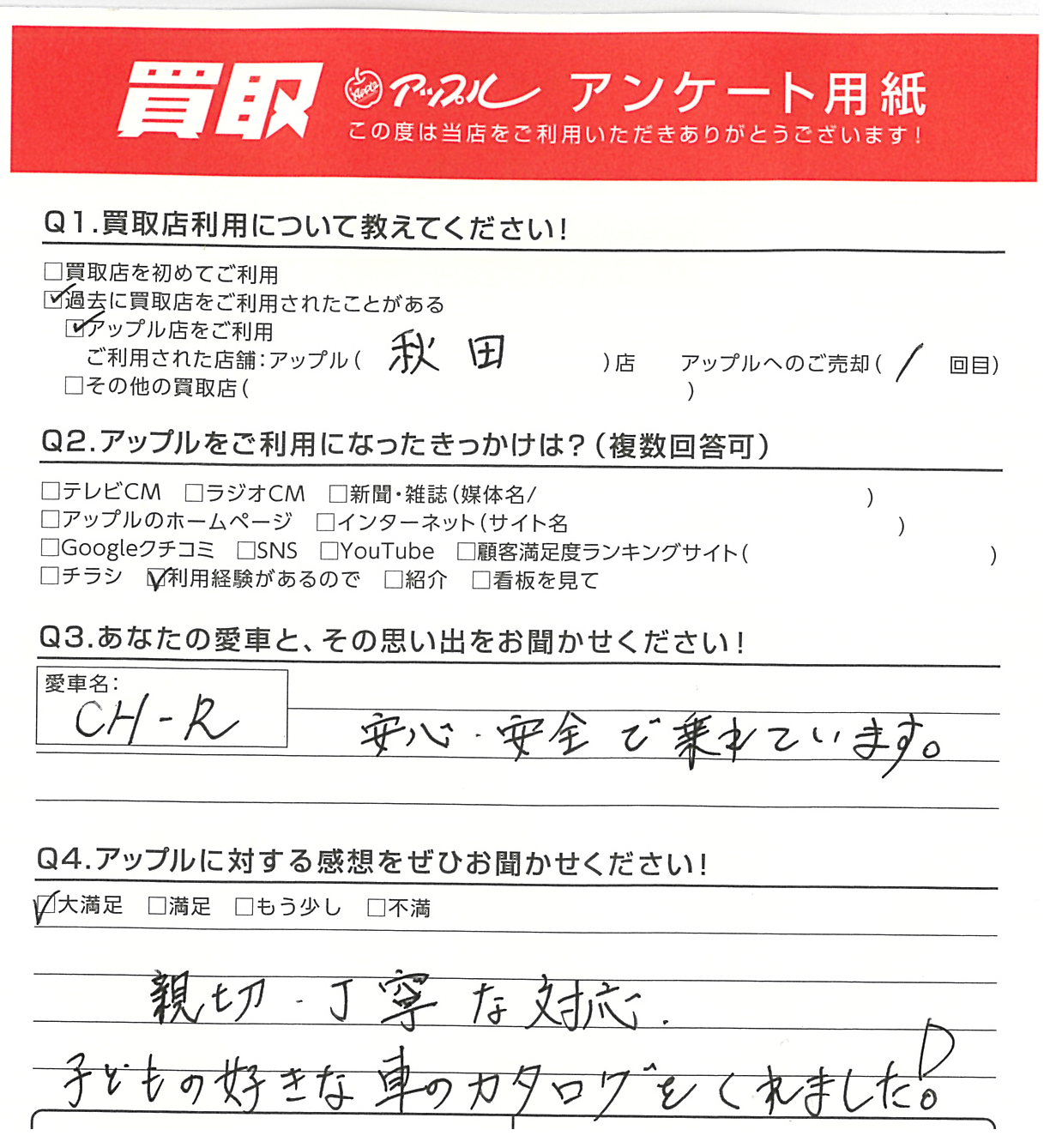 秋田県 匿名様 車名:トヨタ C-HR