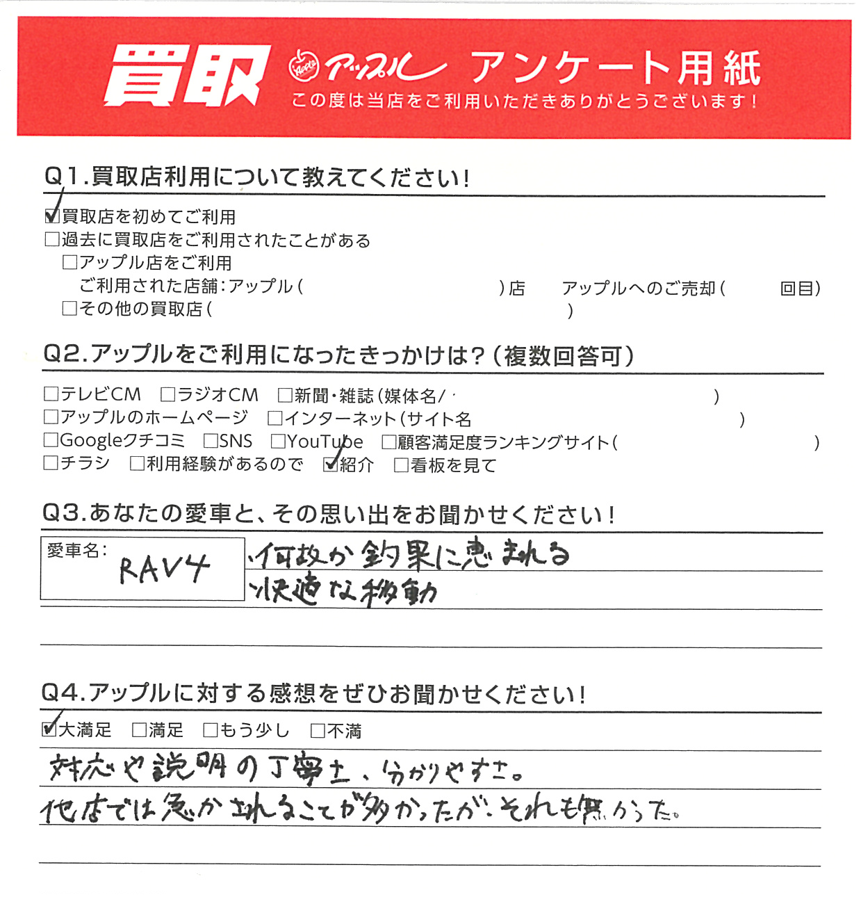 秋田県 匿名様 車名:トヨタ RAV4(R04年10月~RAV4 PHV含む)