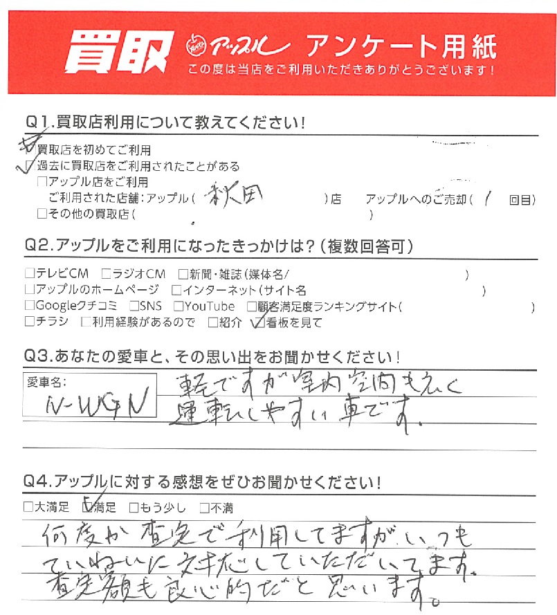 秋田県 匿名様 車名:ホンダ N-WGN