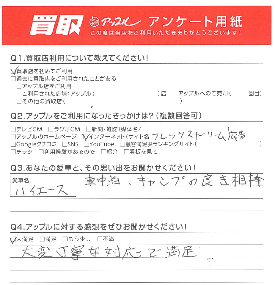 秋田県 匿名様 車名:トヨタ ハイエースワゴン