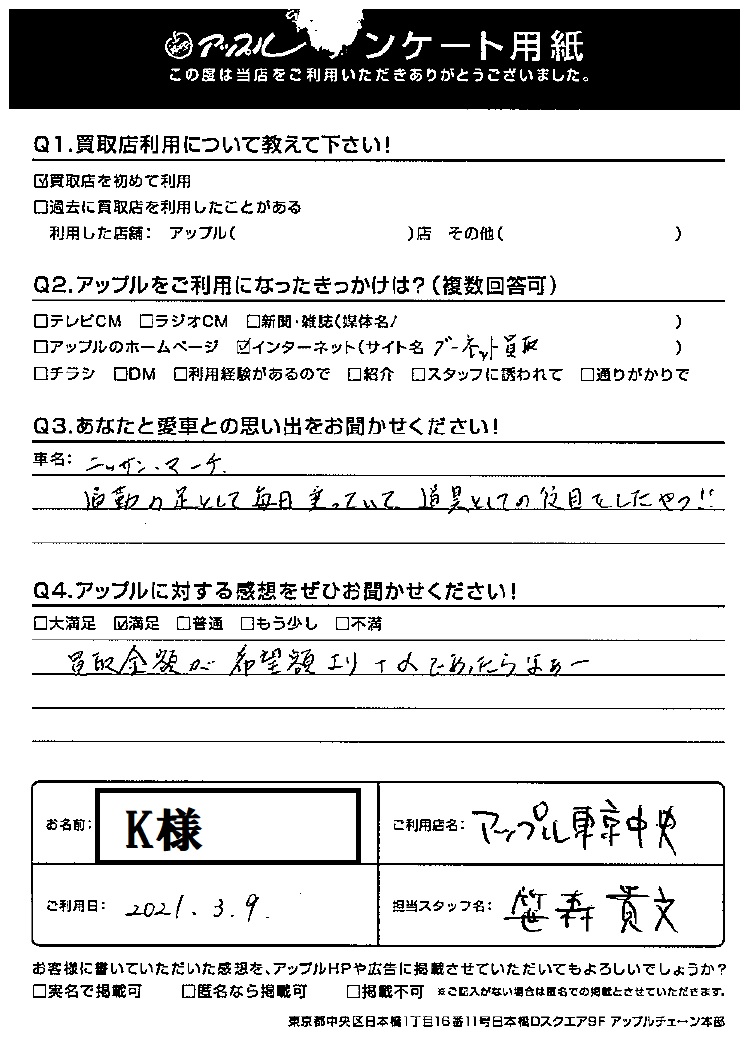 K様  車名:日産 マーチ