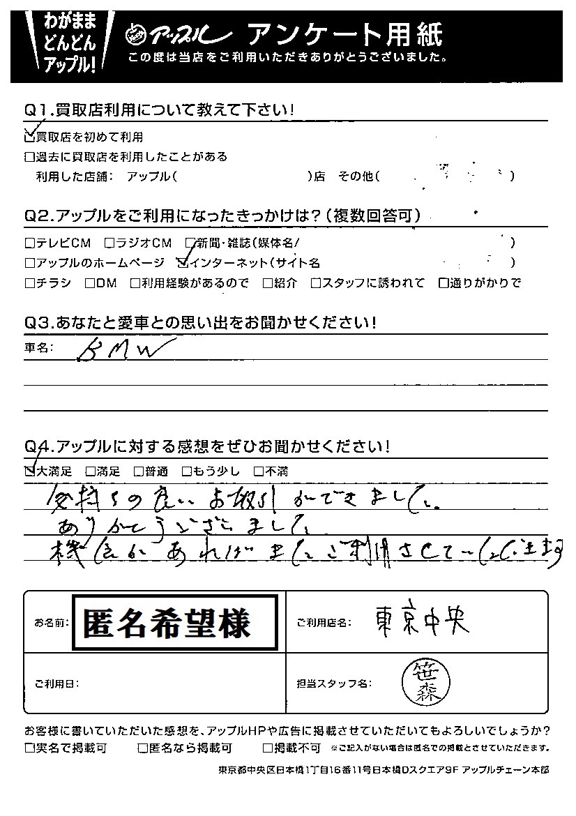 匿名希望様 車名:BMW