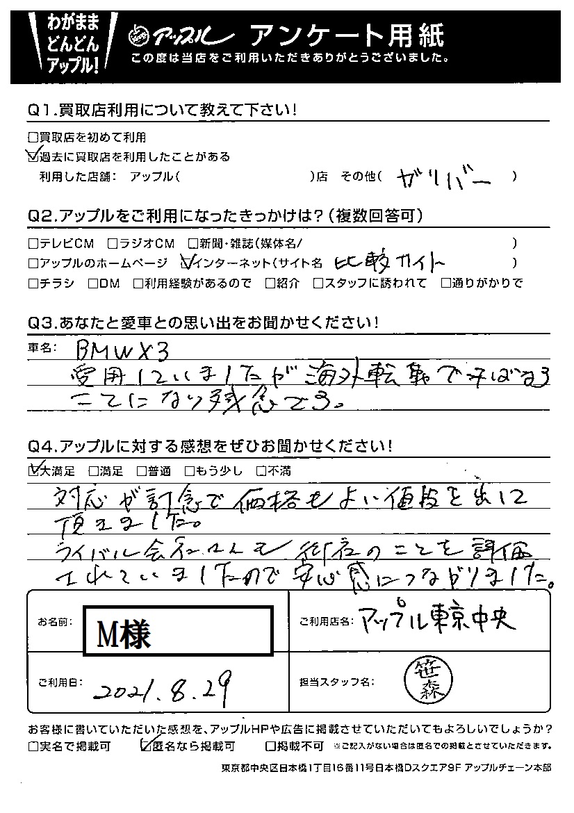 ライバル会社さんも御社のことを評価されていましたので安心感につながりました。