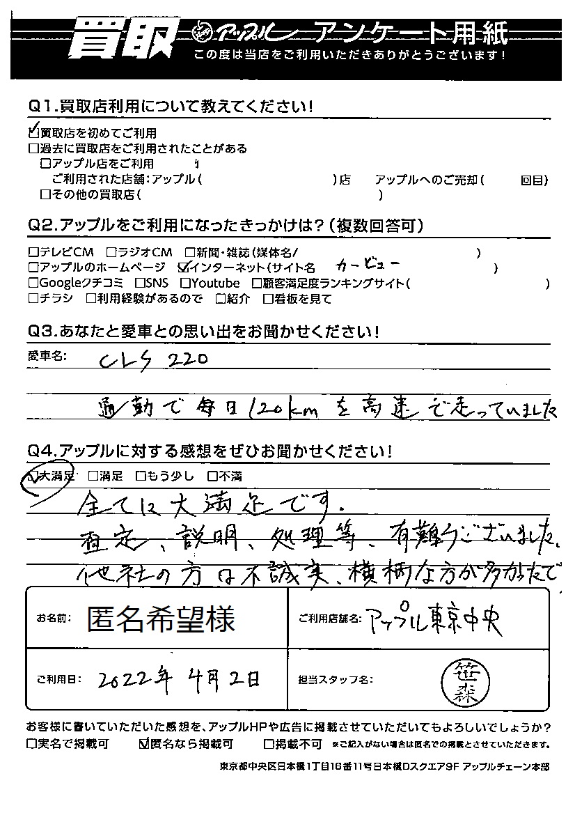 匿名希望様 車名:メルセデス・ベンツ CLSクラス