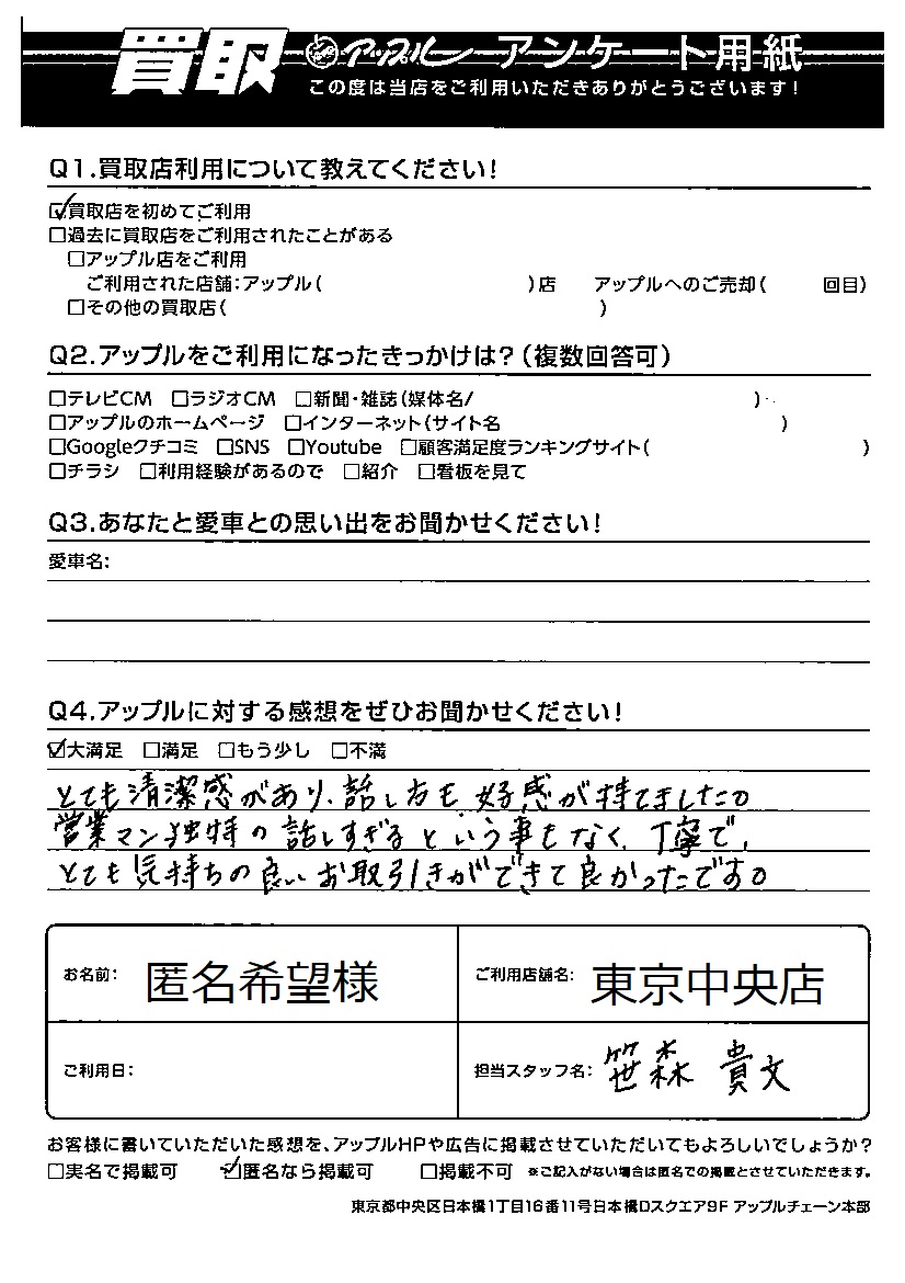 とても清潔感があり、話し方も好感が持てました。営業マン独特の話しすぎるという事もなく、丁寧でとても気持ちの良いお取引きができて良かったです。