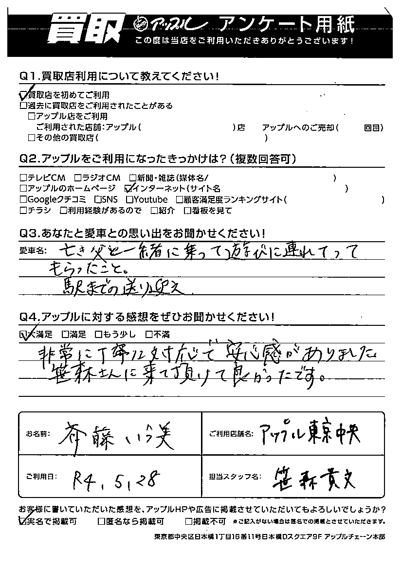 Q あなたと愛車の思い出をお聞かせください