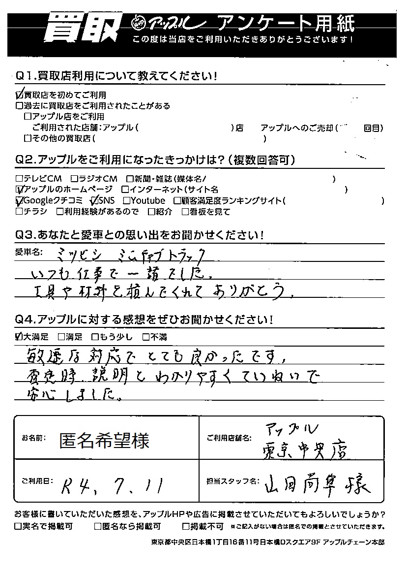 匿名希望様 車名:三菱 ミニキャブトラック