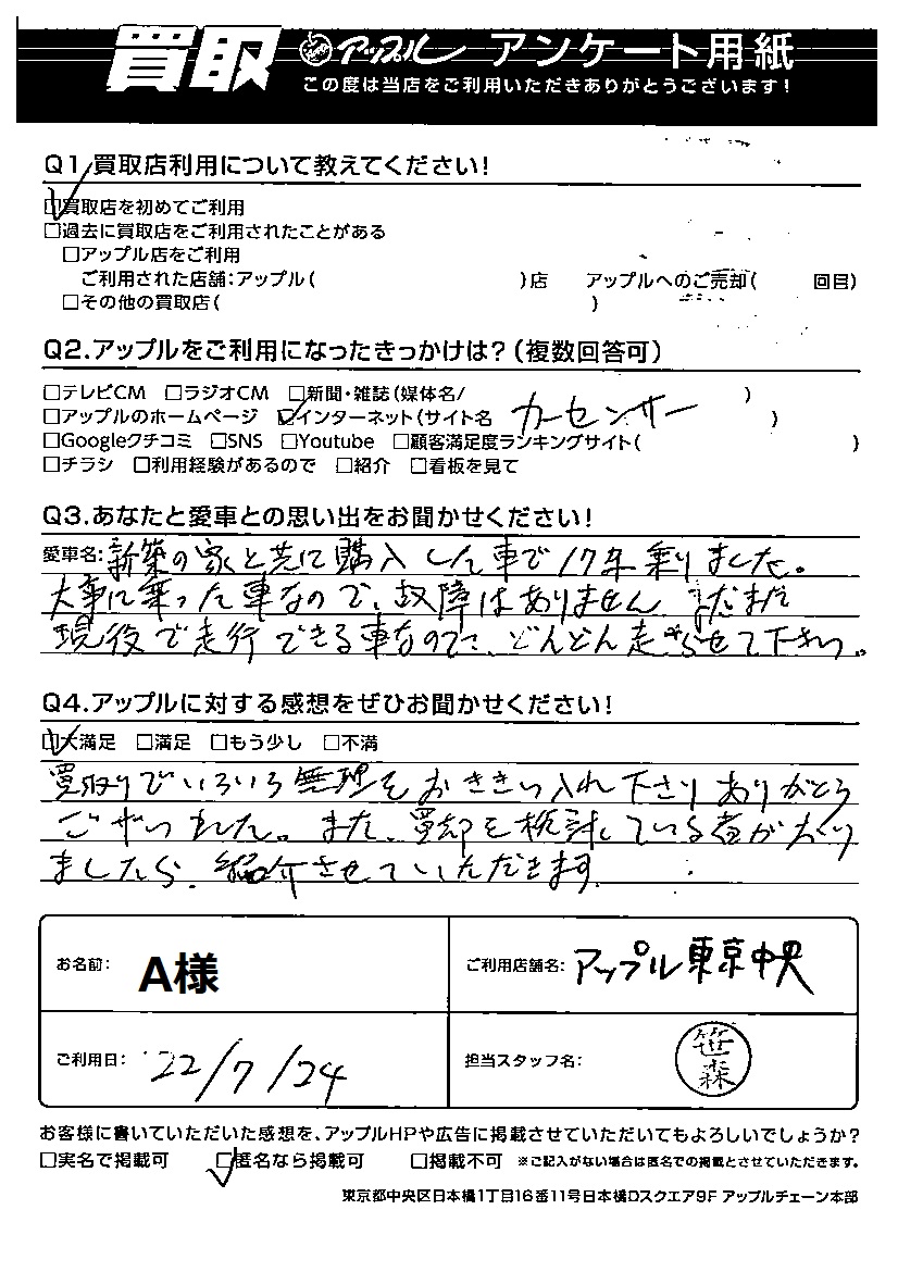 買取りでいろいろ無理をお聞き入れ下さりありがとうございました。