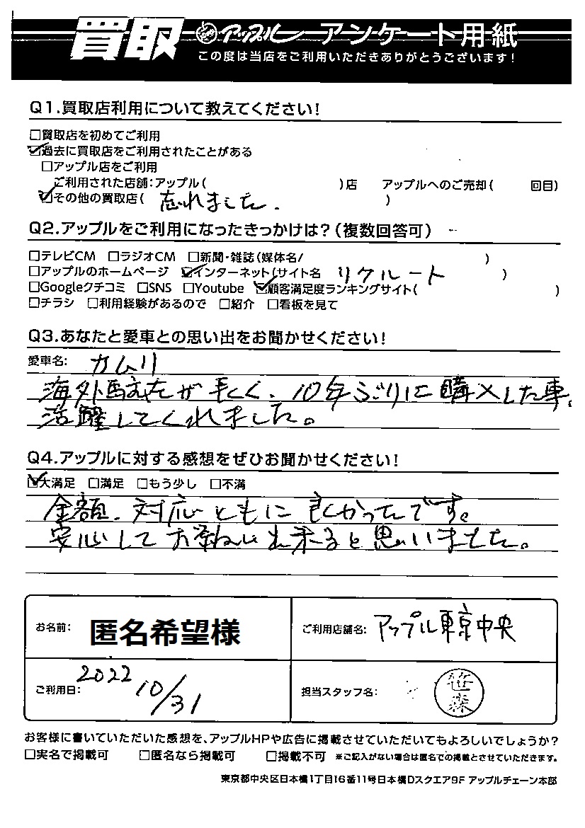 匿名希望様 車名:トヨタ カムリ