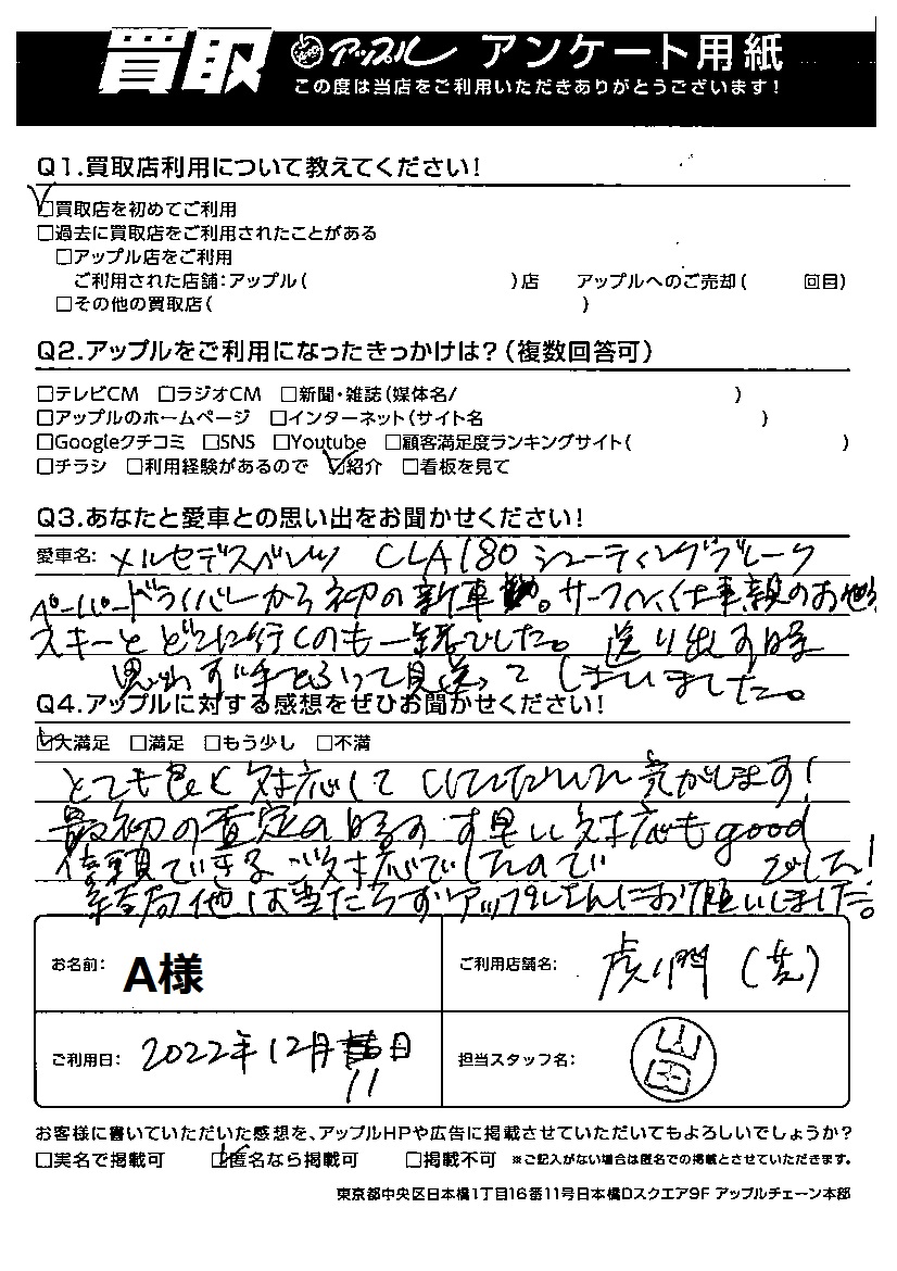 A様 車名:メルセデス・ベンツ CLAシューティングブレーク