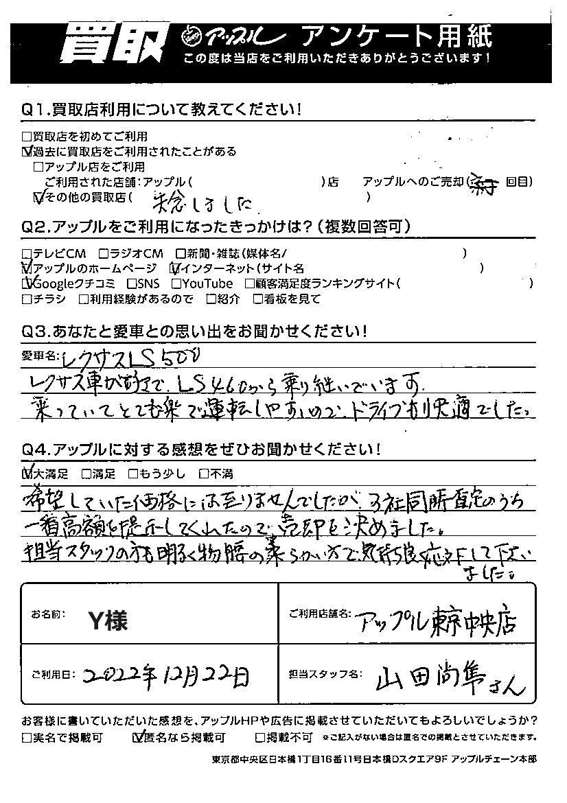 Y様 車名:レクサス LX