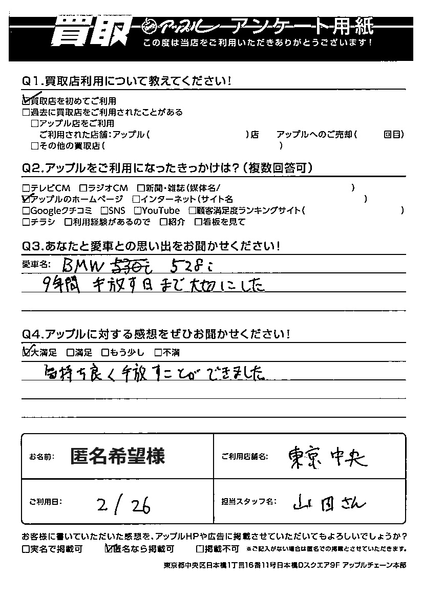 匿名希望様 車名:BMW 5シリーズ