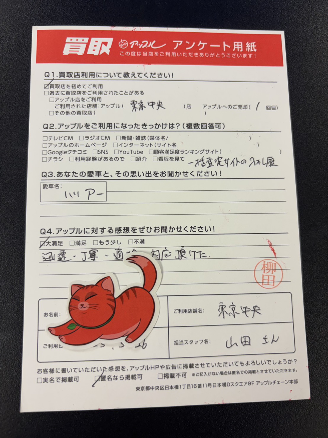 お車のご相談・ 査定だけでもOK! カンタン 入力 30秒 アップルがブランド買取始めました! お電話でも受付中! 受付時間10:00 ~ 19:00 03-6402-3700 お車のご相談・ 査定だけでもOK! カンタン 入力 30秒 アップルがブランド買取始めました! お電話でも受付中! 受付時間10:00 ~ 19:00 03-6402-3700 アップルがブランド買取始めました! お電話でも受付中! 受付時間10:00 ~ 19:00 03-6402-3700 店舗情報 在庫車 スタッフ紹介 ブログ お客様の声 キャンペーン 無料査定 click お客様の声 ご記入日: 2025/05/26 東京都江東区 K様 車名:トヨタ ハリアー (H25年12月~のハイブリッド含む) Q.あなたの愛車と、その思い出をお聞かせください!愛車名:ハリアーQ.アップルに対する感想をぜひお聞かせください!迅速・丁寧・的確に対応頂けた 前へ 次へ お客様の声一覧を見る