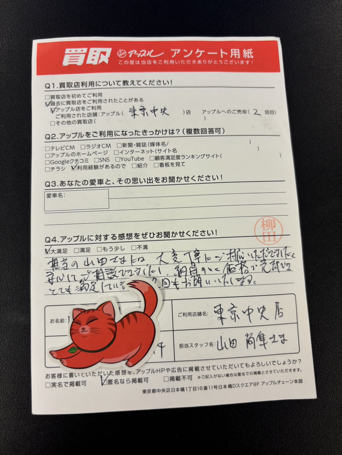 担当の山田さまには、大変丁寧にご対応いただきました。
