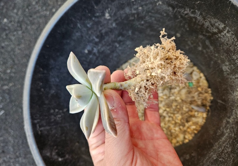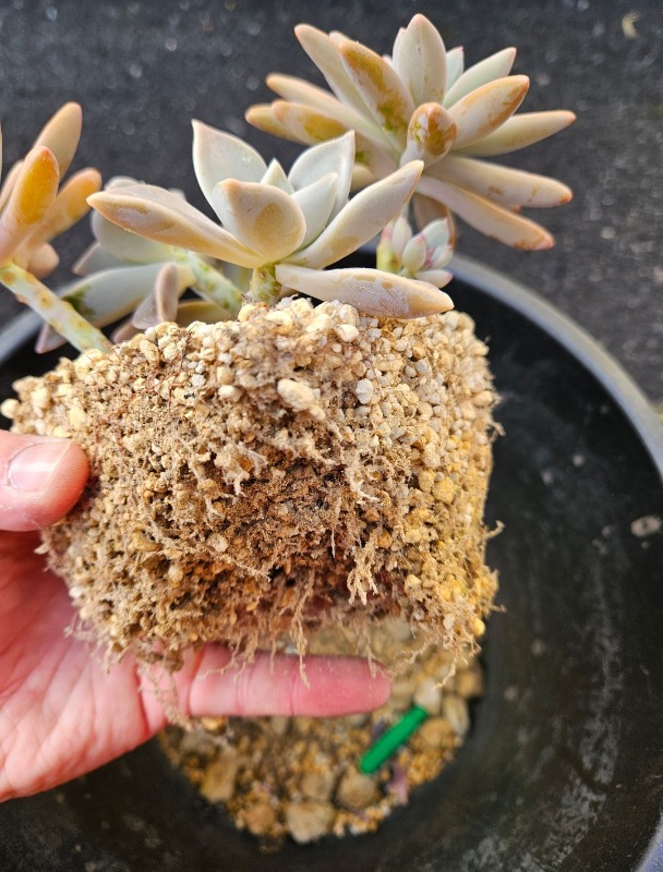 ①鉢から多肉を全部取ってあげます。⇩
